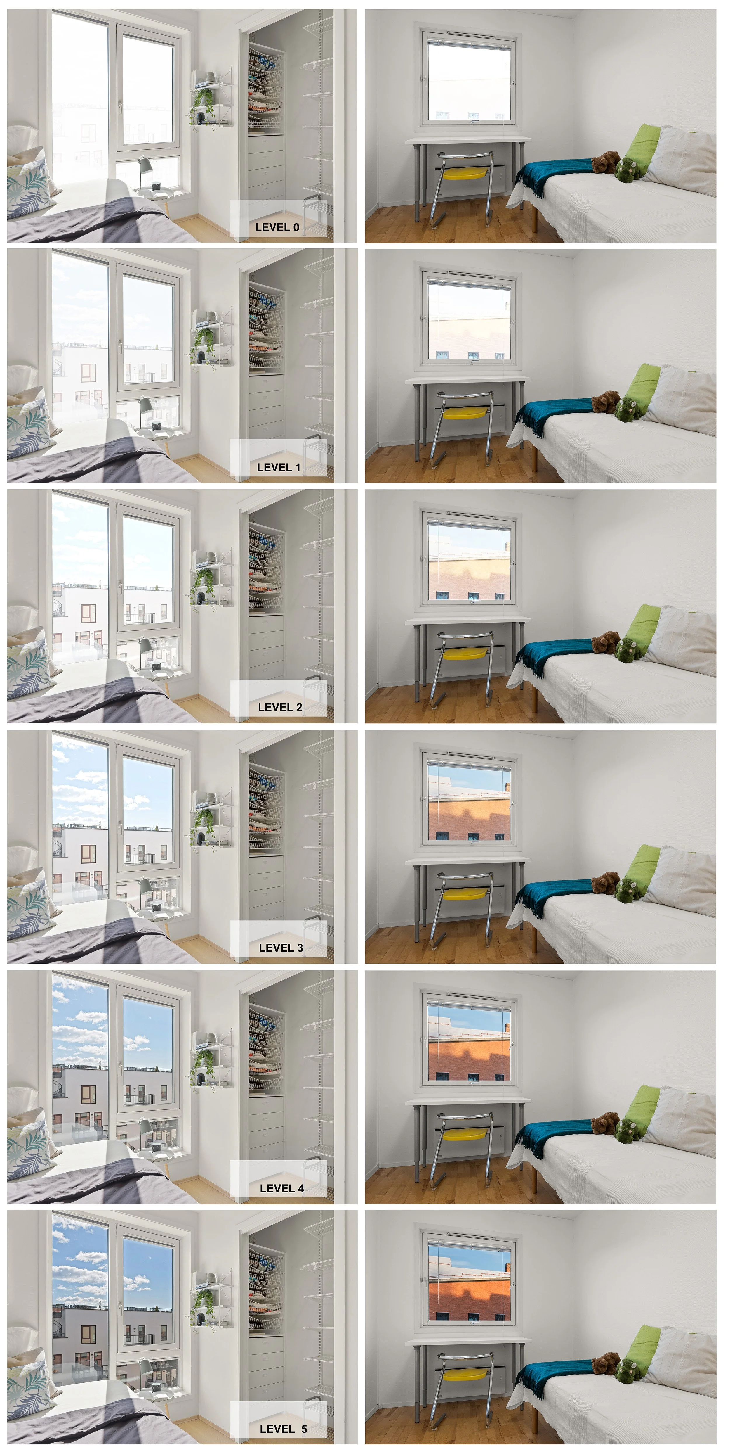 For meglere: Ved bestilling kan du angi hvilken lyshet du ønsker i vinduene. Se eksempler under. Huk også av for blå himmel dersom du ønsker at dette skal legges til på innebildene ved overskyet vær.